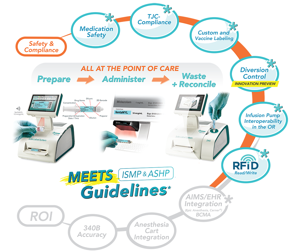 With SLS and SLS-WAVE, electronic safety checks are seamlessly integrated into the anesthesia workflow, helping to prevent the most common medication errors. SLS integrates with anesthesia carts to improve inventory management and with AIMS/EHR systems to ensure 100% charge capture, 340B compliance, and accurate documentation at the point of administration. Additionally, SLS-prepared syringes include a barcode that enables integration with interoperable infusion pumps, further enhancing workflow and reducing human error. This integrated approach not only protects patients but also drives significant ROI, enabling healthcare teams to deliver safer, more efficient care with confidence, and improving both patient outcomes and operational performance.